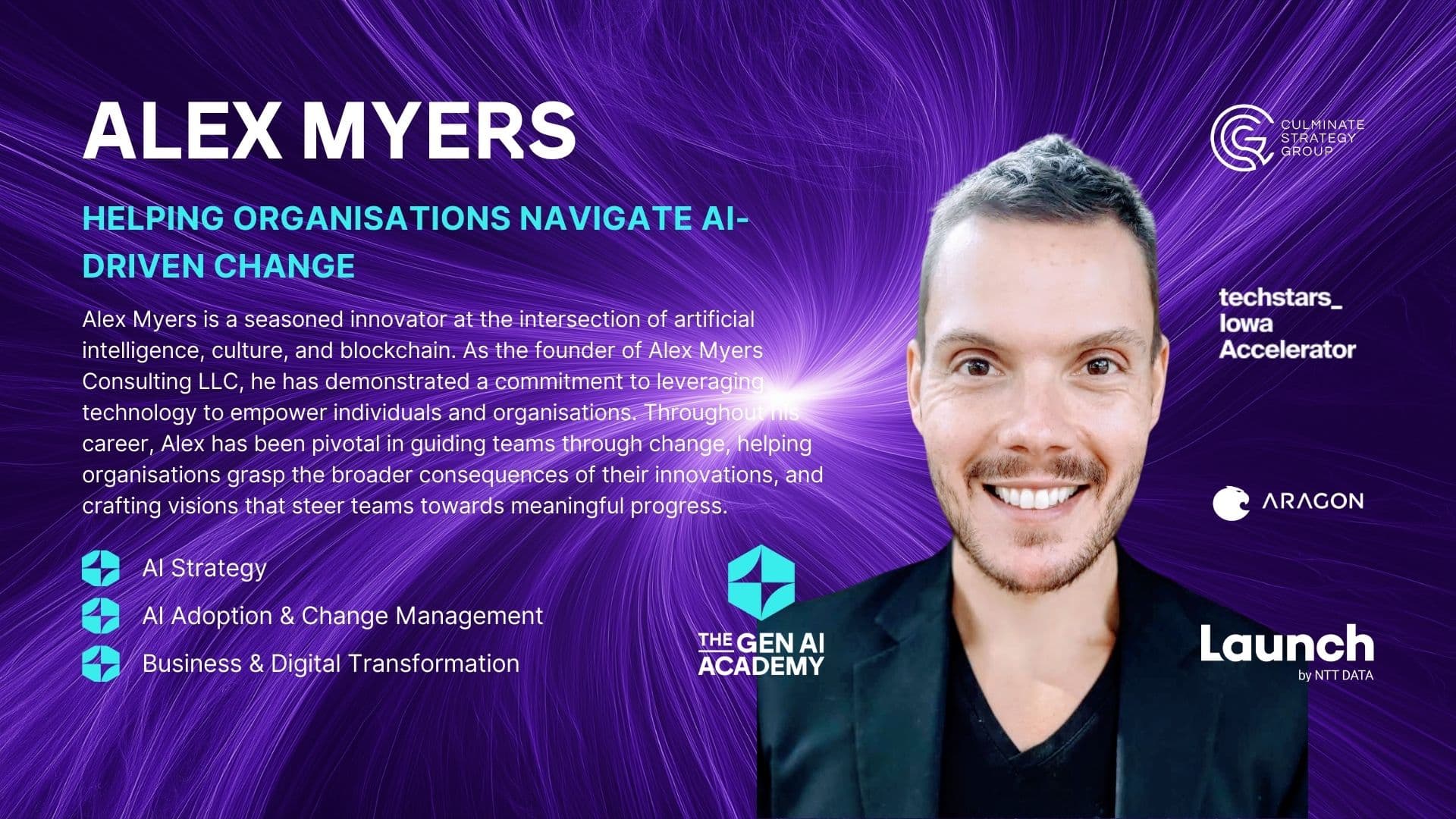 Alex Myers est un innovateur chevronné à la croisée de l'intelligence artificielle, de la culture et de la blockchain. En tant que fondateur d'Alex Myers Consulting LLC, il a démontré son engagement à tirer parti de la technologie pour autonomiser les individus et les organisations. Tout au long de sa carrière, Alex a joué un rôle central dans l'accompagnement des équipes à travers le changement, en aidant les organisations à saisir les conséquences plus larges de leurs innovations et en élaborant des visions qui orientent les équipes vers des progrès significatifs.