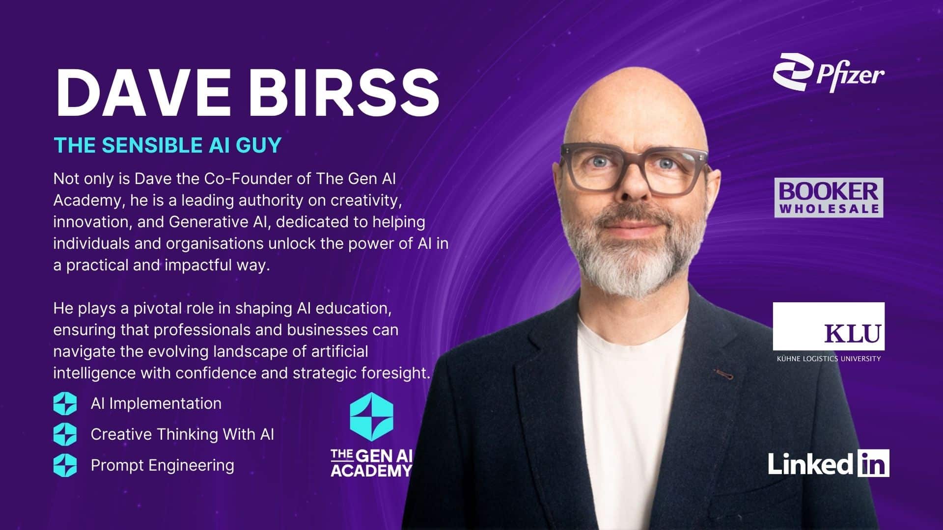 Dave Birss est une autorité de premier plan en matière de créativité, d'innovation et d'IA générative. Il se consacre à aider les particuliers et les organisations à exploiter le potentiel de l'IA de manière pratique et efficace. En tant que cofondateur de la Gen AI Academy, il joue un rôle central dans l'élaboration de l'enseignement de l'IA, veillant à ce que les professionnels et les entreprises puissent naviguer dans le paysage en constante évolution de l'intelligence artificielle avec confiance et une vision stratégique.