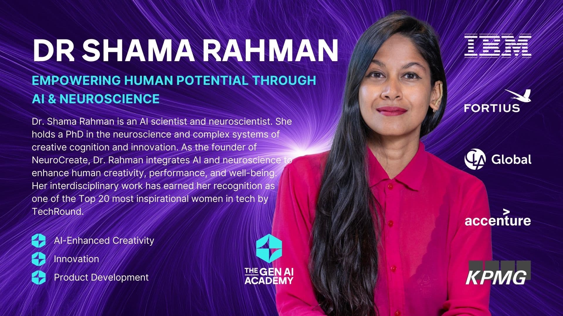 Le Dr Shama Rahman est une scientifique de premier plan dans le domaine de l'IA, une neuroscientifique et une entrepreneuse spécialisée dans l'intersection entre l'intelligence artificielle, la créativité humaine et l'amélioration cognitive. Titulaire d'un doctorat en neurosciences et en systèmes complexes axé sur la cognition créative et l'innovation, elle a consacré sa carrière à explorer comment l'IA peut augmenter le potentiel humain, améliorer la résolution de problèmes et stimuler l'innovation.